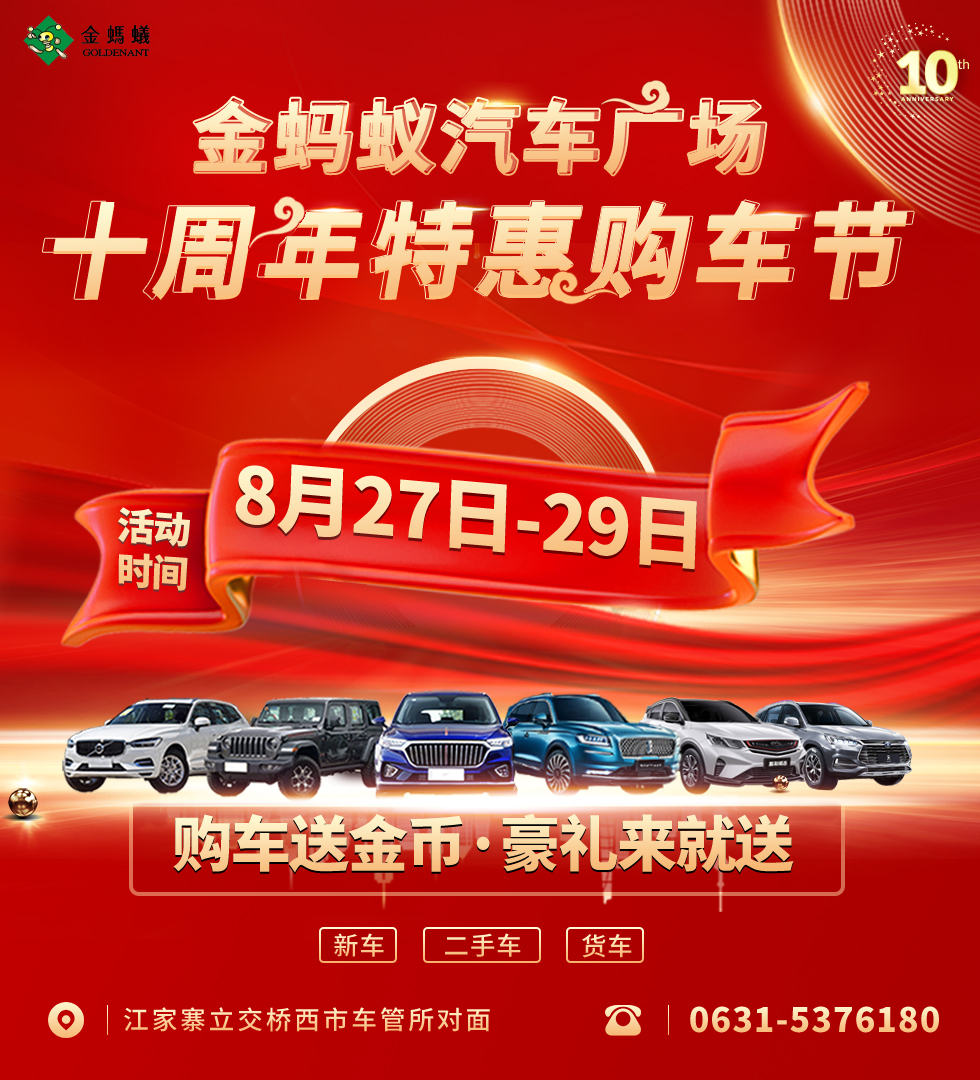 查看詳細(xì)“百萬(wàn)車主的共同選擇——買車就到金螞蟻汽車廣場(chǎng)” 金螞蟻汽車廣場(chǎng)位于威海市南大門----溫泉鎮(zhèn),東臨江家寨立交橋,西臨202省道,北臨301省道,是進(jìn)出威海市區(qū)和榮成、文登、乳山三市重要的交通樞紐。毗鄰?fù)J熊嚬芩?,地理位置非常?yōu)越。經(jīng)過八年的發(fā)展,廣場(chǎng)已經(jīng)建成了汽車綜合博覽中心、40家汽車標(biāo)準(zhǔn)4S店(80多個(gè)國(guó)內(nèi)外知名品牌)、貨車市場(chǎng)、二手車市場(chǎng)、汽車配件、汽車裝潢及綜合服務(wù)為一體的膠東地區(qū)最大的汽車商貿(mào)城,廣大消費(fèi)者在這里不但可以選到適合自己的愛車,更可以享受掛牌、交費(fèi)以及后期保養(yǎng)、維修、零部件更換、二手車轉(zhuǎn)讓等“一站式”貼心服務(wù)。