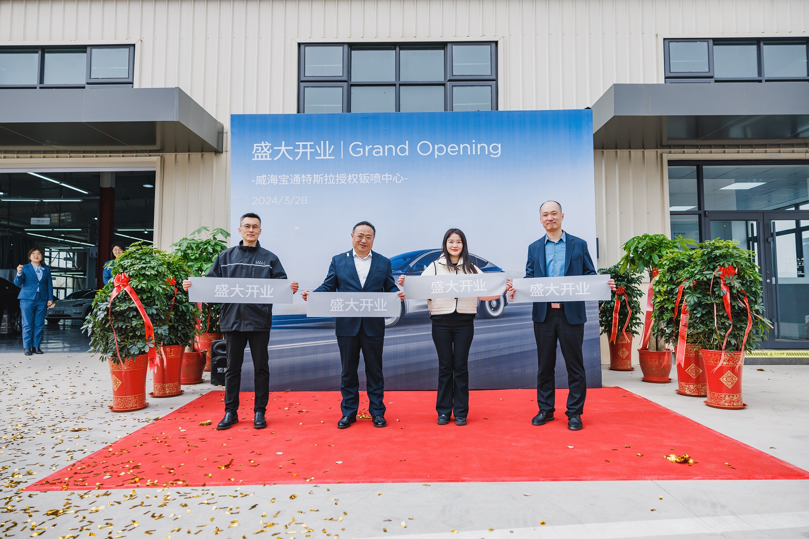 2024年3月28日威海寶通特斯拉鈑噴中心在金螞蟻汽車廣場南大門盛大開業(yè)
